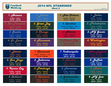 2014 NFL Standings Printable Football Weblog